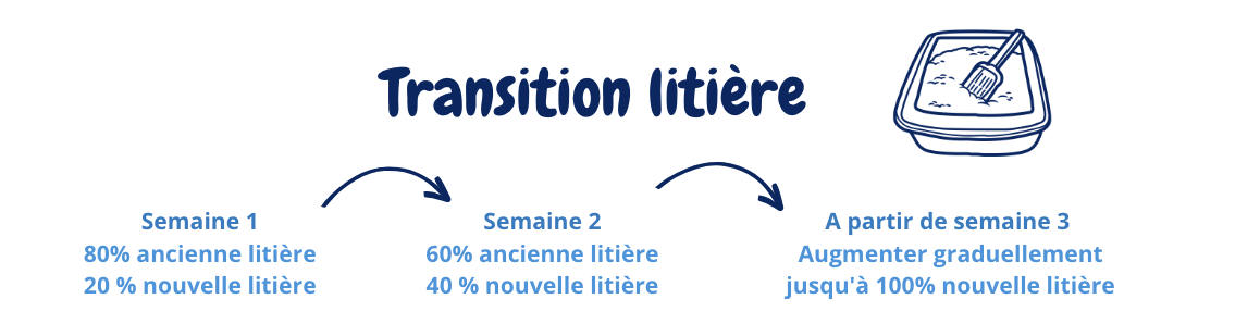 Effectuer une transition progressive est la clef du succès.Les chats sont des animaux de routine et un changement brutal peut les stresser et provoquer de la malpropreté.
