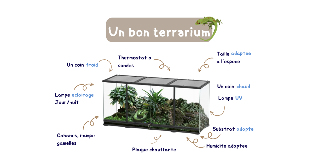 Le terrarium représente un investissement parfois plus cher que l'animal en lui-même cependant, il est crucial à son bien être.