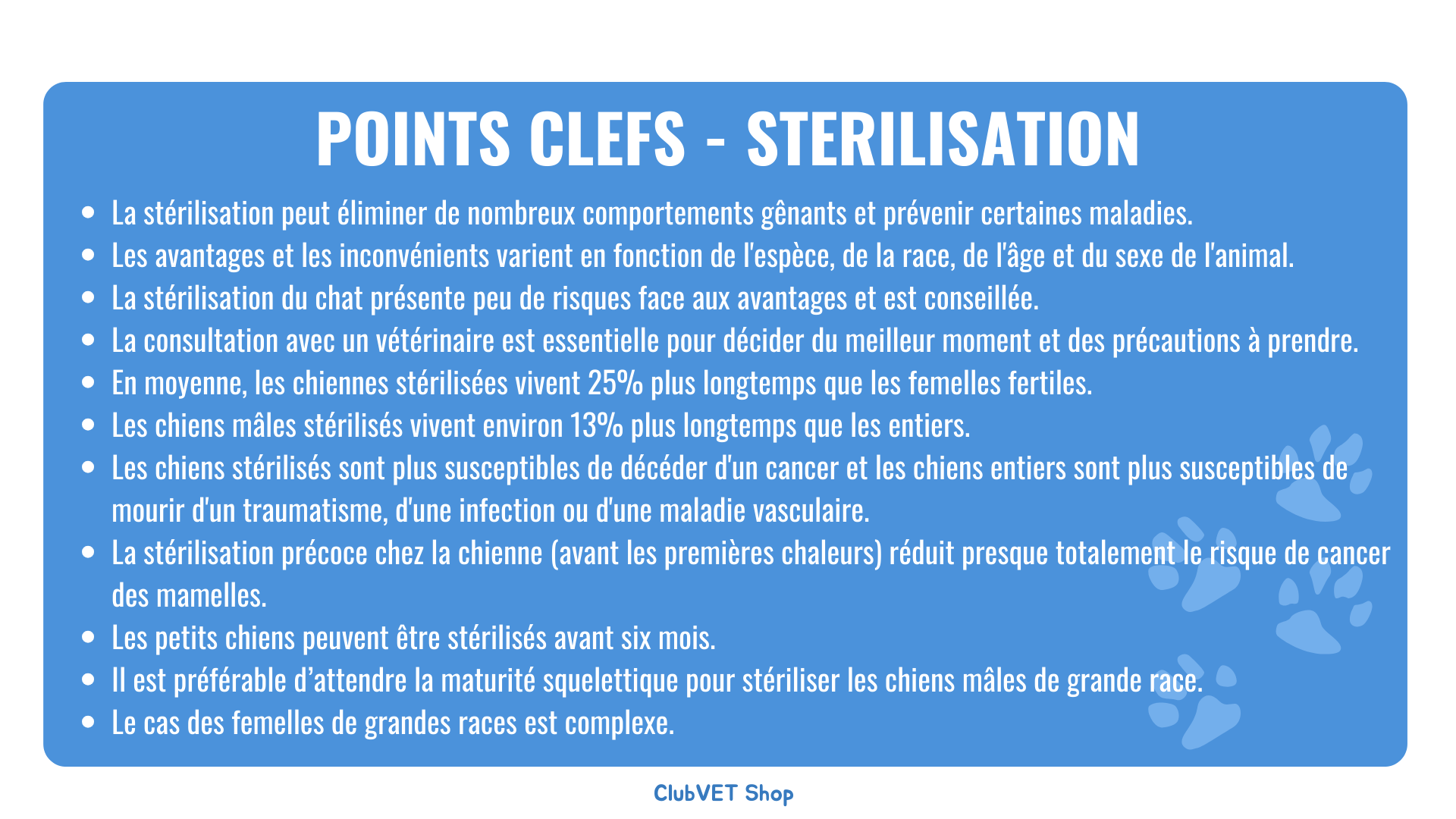 La stérilisation, et surtout la stérilisation précoce, est fortement recommandée pour les chiens et les chats.