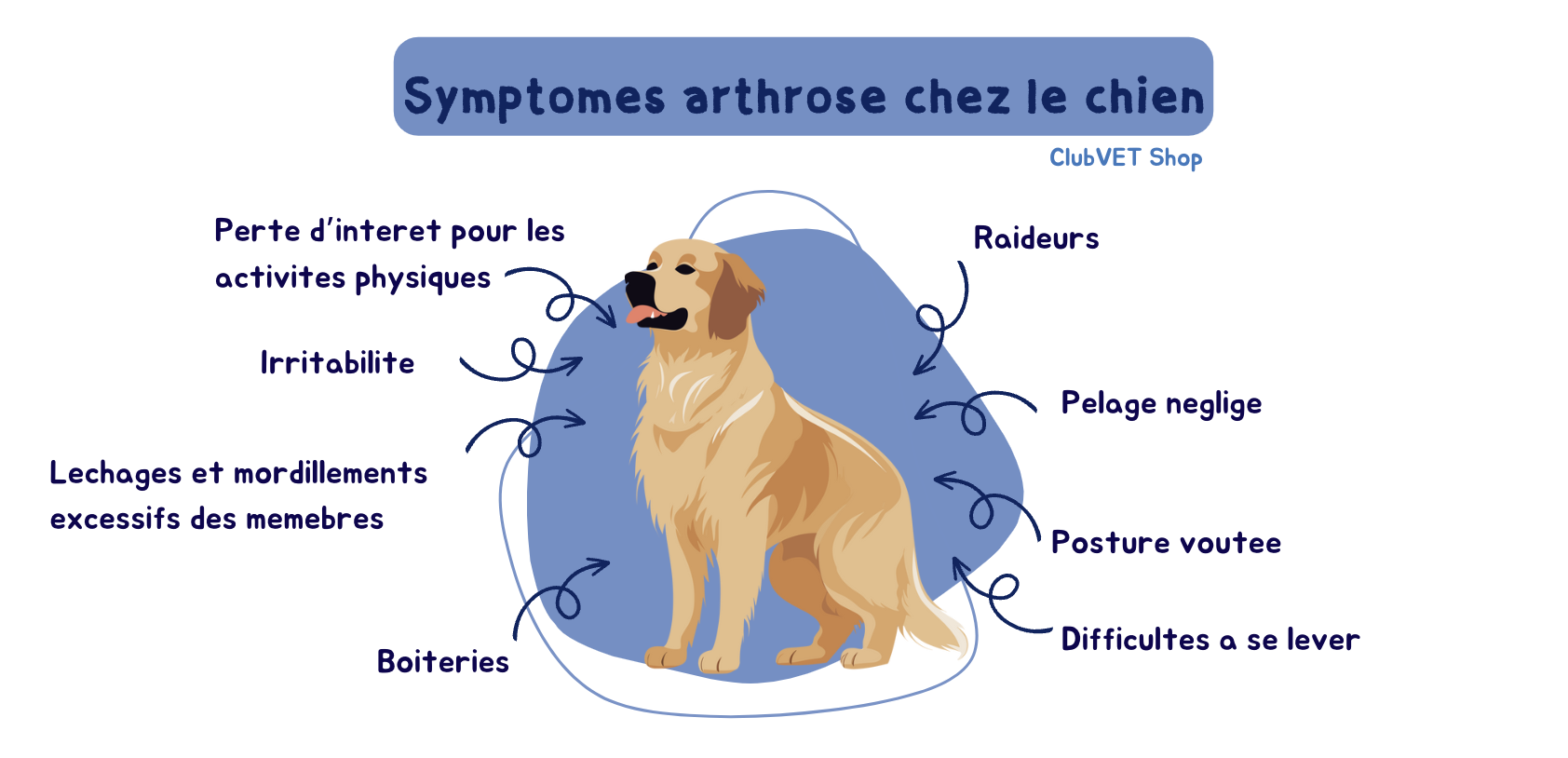 Les symptômes de l'arthrose chez le chien sont principalement liés à la douleur et à la perte de mobilité.