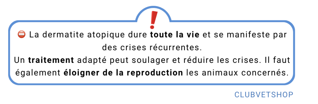 Lorsque la dermatite est héréditaire, les signes apparaissent souvent entre 1 et 3 ans, mais ils peuvent survenir plus tôt chez certaines races très sensibles comme le Bouledogue, le Shar-Peï ou le Staffie.